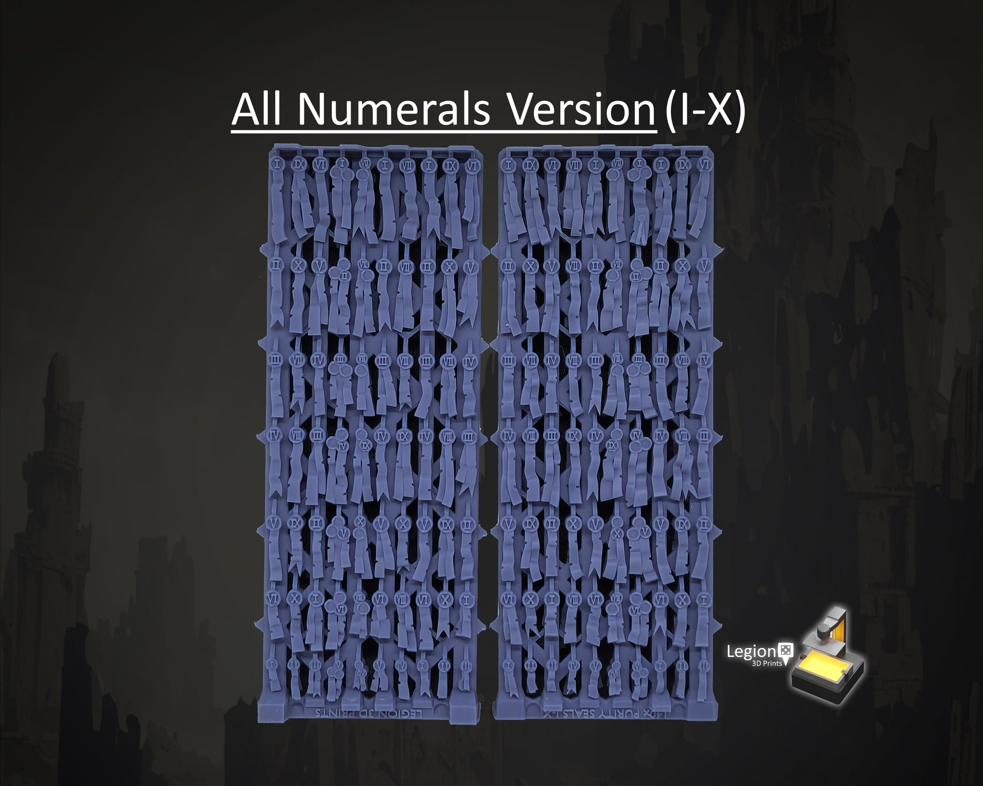 The standard pack has 70x Blank, 35x with Skulls and 35x with Numerals on the seal, though there's a fully blank, all skulls and all numerals versions too (perfect for your chaplains!)